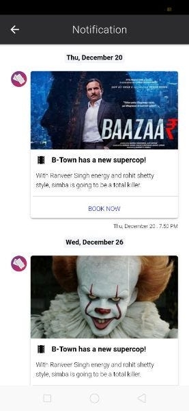 This page contains the notifications for the events and movies in the vertical direction. To enable and disable mobile notifications, you will first need a Push notifications system in your back-end. If you are using Firebase — implementing, enabling and disabling push notification is very easy compared to a custom back-end. Read more about Firebase- Ionic push notificationhere.