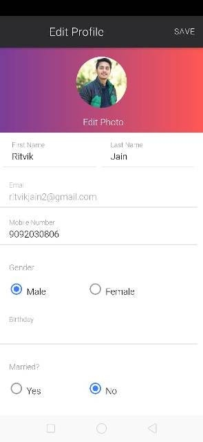 This is the fourth tab of this application. This page contains all the user information, here user can edit his personal information and change the app settings according to the user need. This page navigates to the following pages: —