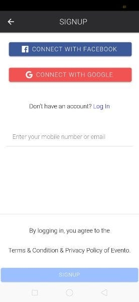 All the random queries related Evento app is listed here in a vertical direction.