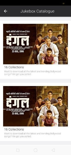 This page can be accessed from the userinfo page. By clicking on the Jukebox credits text. It navigates to this page. This page contains all the series or bundles of the movies or events. User can download all the latest and trending actions all around the world. Here this page is only UI.