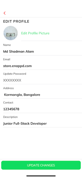 The options available can be chosen to edit user name, email address, update password, address, contact, and description as per your requirement. “Back” button takes you back to the “My account ” page.