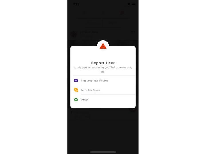 Feed popover actions - Report a user page.